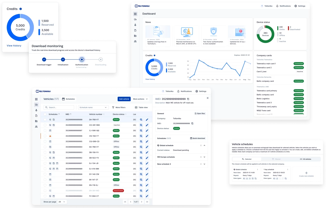 Autoryzuj zdalne przesyłanie danych z tachografu za pośrednictwem naszej specjalnej aplikacji z obsługą zarówno pojedynczych, jak i wielu kart przedsiębiorstwa w celu skalowania operacji floty.